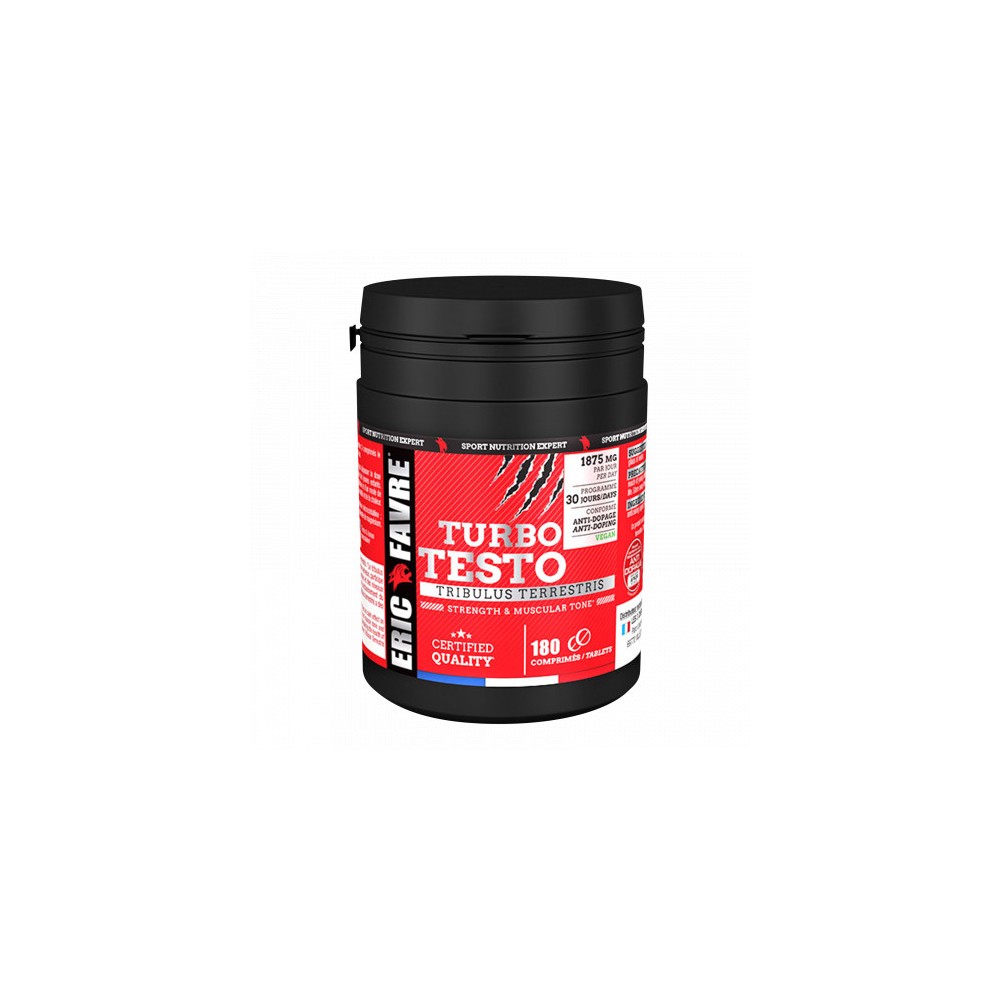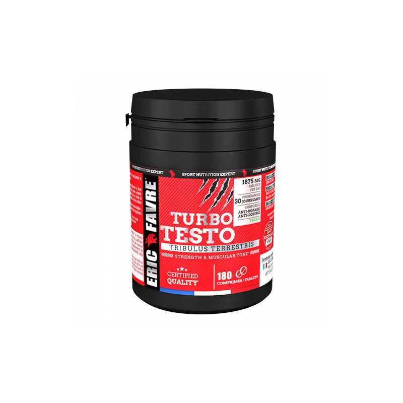 TURBO TESTO ERIC FAVRE est un complément alimentaire à base de TRIBULLUS TERRESTRIS titré à 40% en saponine. Cet extrait naturel de plante est un classique de la nutrition sportive très efficace pour booster votre taux de testostérone.