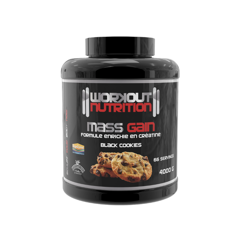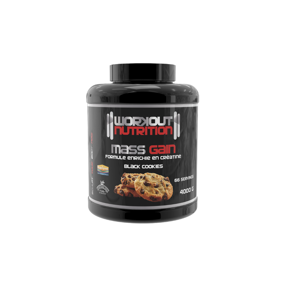 Mass gain 4 Kg , GAINER enrichi en créatine spécialement conçu pour un prise de masse rapide par la marque 100% française WORKOUT NUTRITION