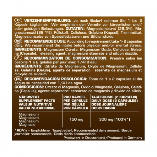 Comme le magnésium est sous forme de citrate de magnésium, il peut facilement entrer dans le corps et se mettre rapidement à disposition du métabolisme.