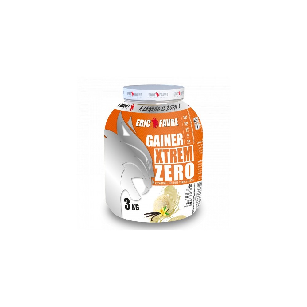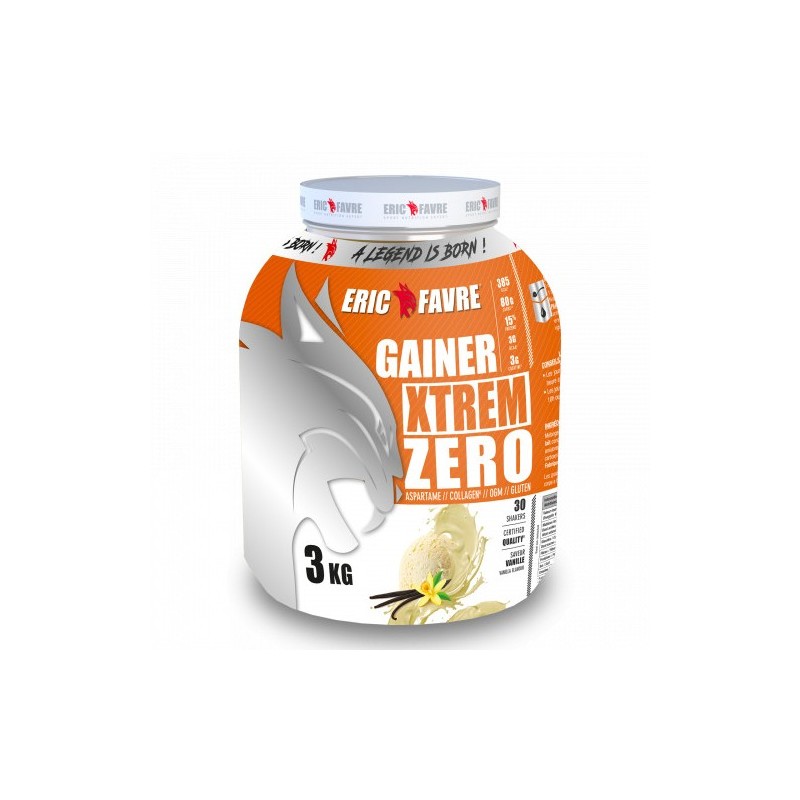 Gainer Xtrem Zero est un gainer extreme développé par les laboratoires Eric Favre à partir de protéines de lactosérum (whey concentrée) ainsi que diverses sources de glucides dont de la maltodextrine, très couramment utilisé dans les gainers, ainsi que de la farine d'avoine. Avec sa forte teneur en calories, ce gainer permet d'augmenter vos apports énergétiques sur votre journée afin de contribuer à ue prise de masse rapide et efficace . Les protéines contribuent à l'augmentation et au maintien de la masse musculaire.
