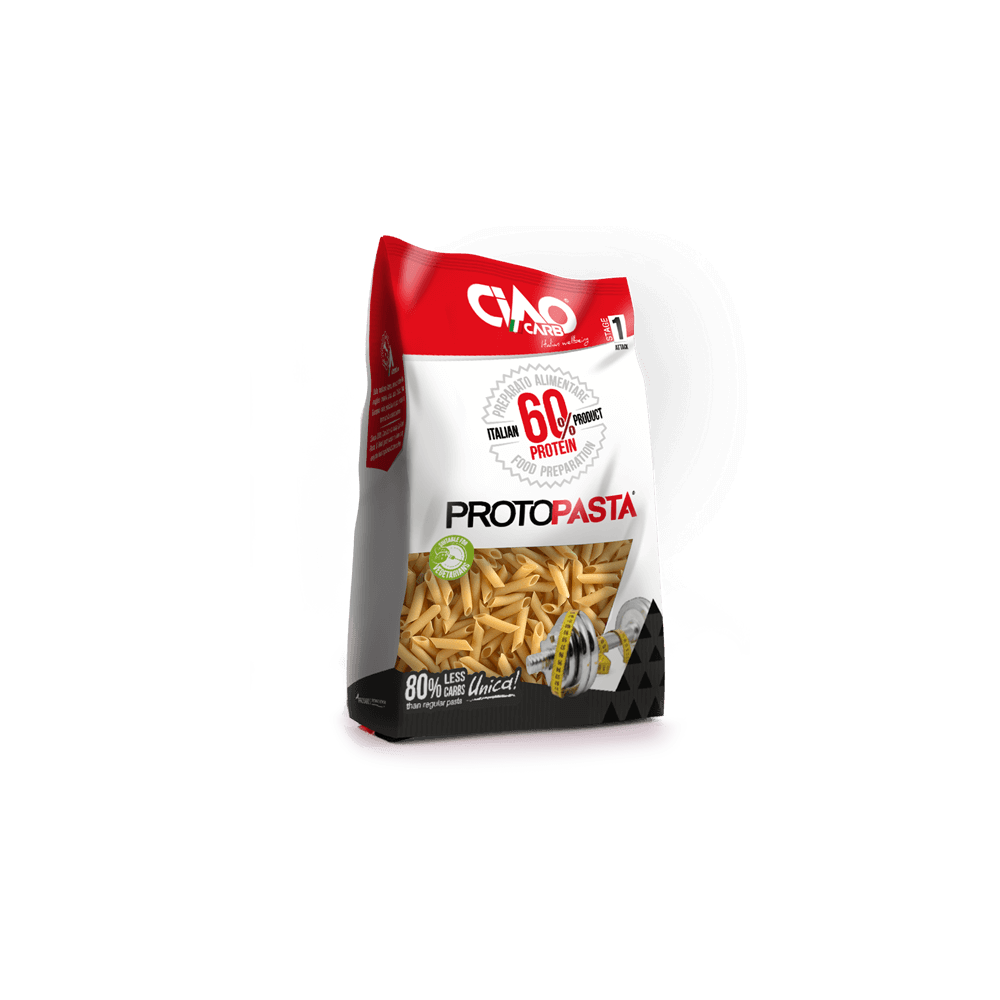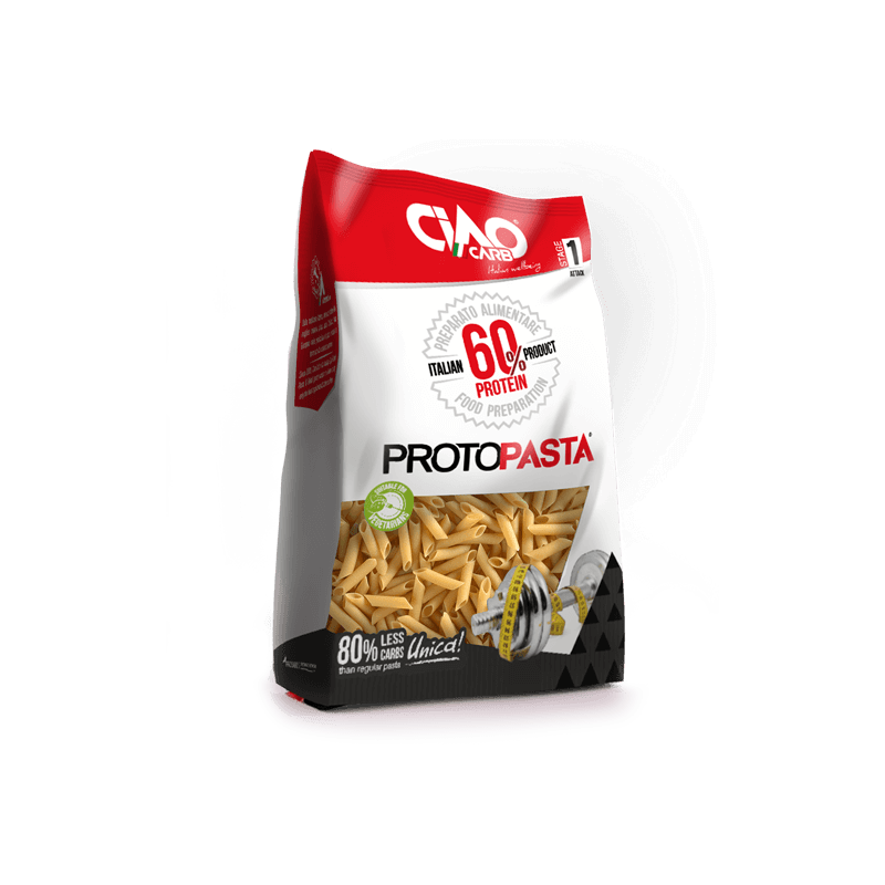 PROTO PASTA PENNE de la marque italienne CIAO CARB sont un mélange exclusif de protéines et de fibres végétales pour un régime pauvre en glucides low carb et riche en protéines !
