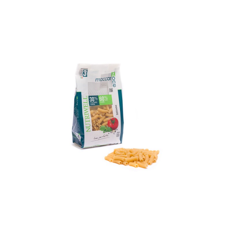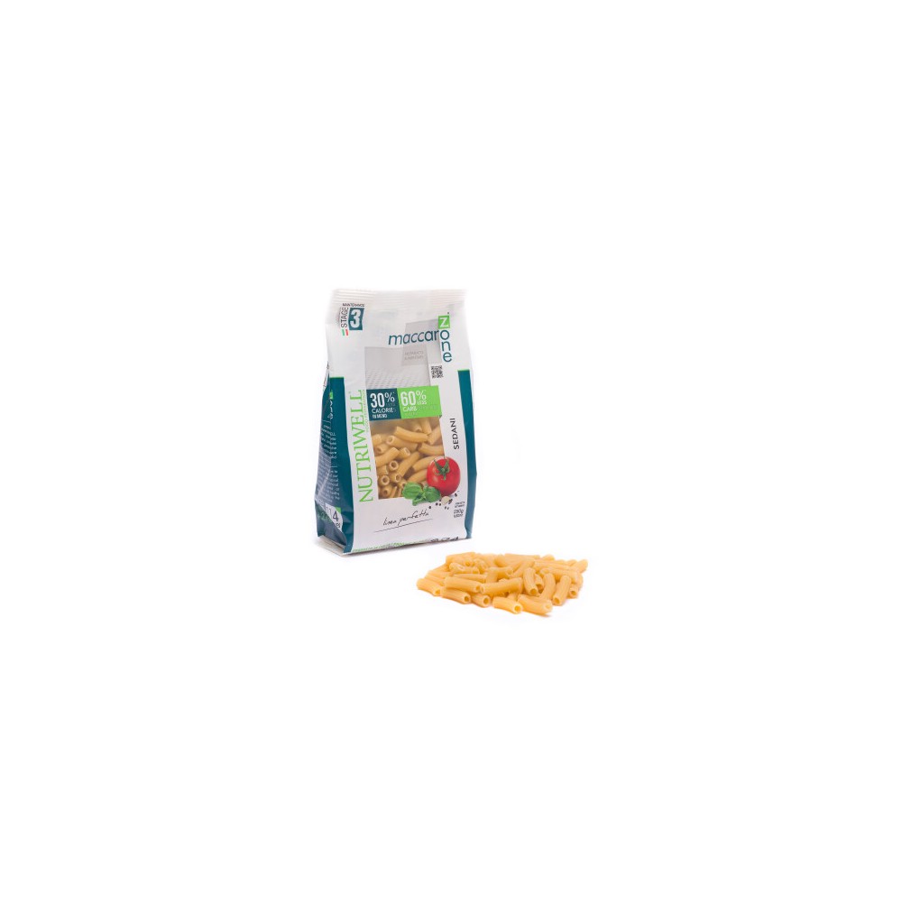 Sedani Maccarozone Stage 3 sont fabriquées par la marque Italienne Ciao Carb. Ce sont des pâtes hyperprotéinées en forme de tube qui sont très populaires en Italie. Ces pâtes protéinées ont un profil nutritionnel allégé par rapport aux pâtes traditionnelles. On y retrouve en moyenne 60% de glucides et 30% de calories en moins. Elles sont riches en protéines et en fibres et ne contiennent pas de sucres, ni de matières grasses.