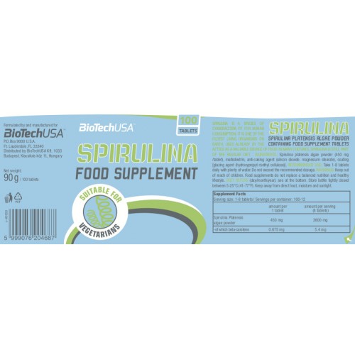 Spirulina de la marque Biotech USA est une source de spiruline pure, exceptionnellement riche en protéine, GLA, antioxydants et acides aminés essentiels. Cette spiruline est idéale pour tous les programmes de renforcement musculaire et les sportifs soumis à des programmes d’entraînement intensifs.